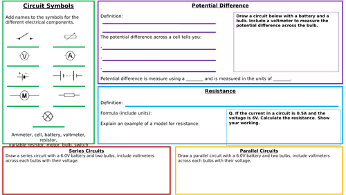 Ks3 Potential Difference And Resistance Summary Sheet And Answers Teaching Resources